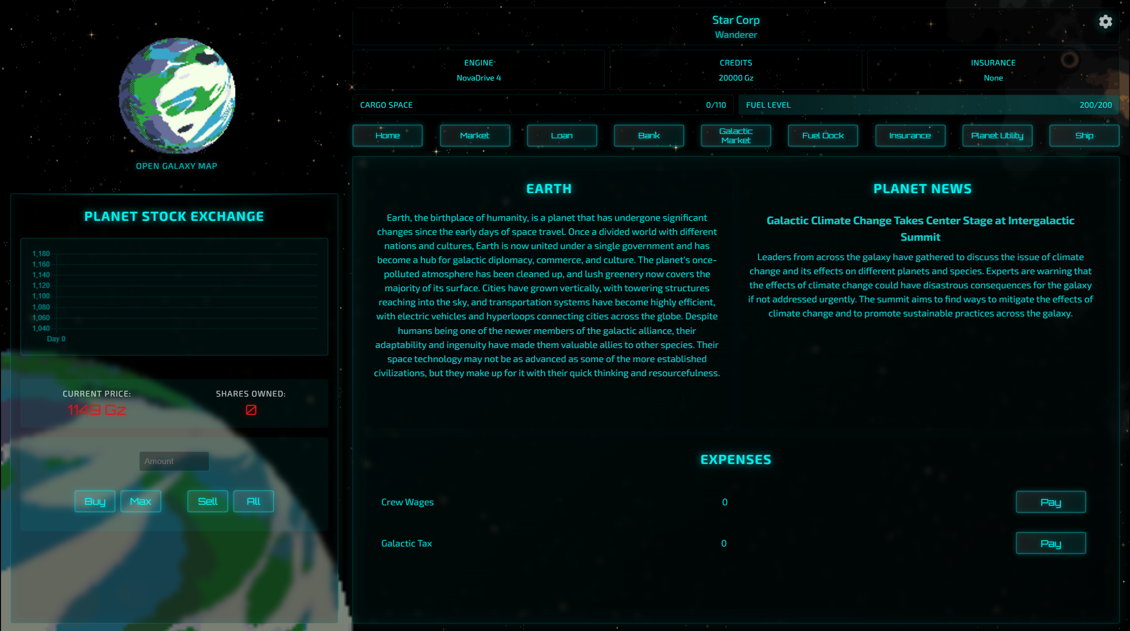 You are an ambitious space trader with one ship, limited credits, and a galaxy full of bad deals pretending to be good ones. Buy low, sell high, and try not to get outplayed by the market, your rivals, or your own crew.
